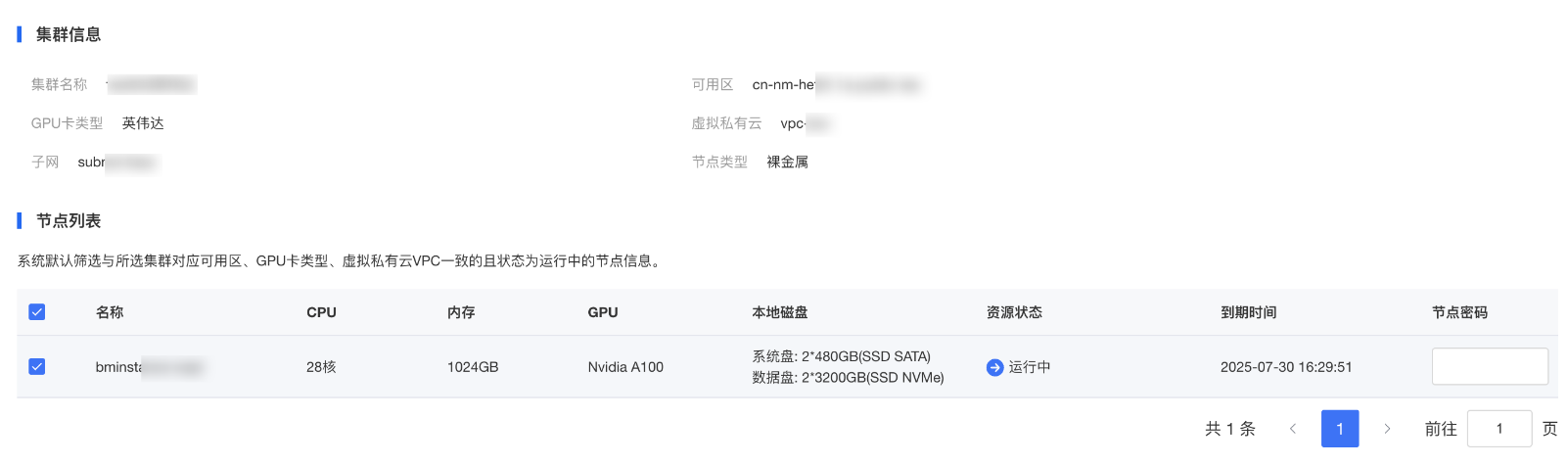 登录公共算力服务控制台,单击左侧导航栏中的【集群>裸金属集群】,进入集群列表页。选择具体集群进入集群详情页。