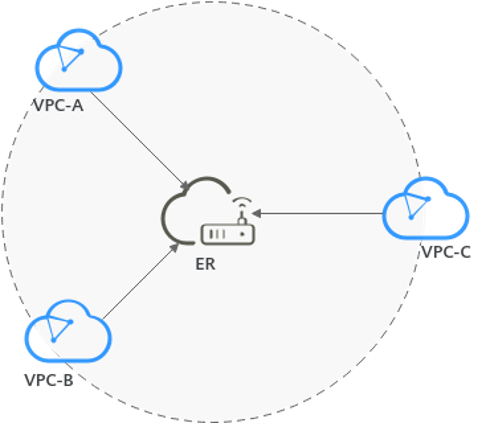 | 方案一 | 将业务VPC-A和业务VPC-B、VPC-C直接接入企业路由器ER。 | VPC-A、VPC-B以及VPC-C之间的网络通过ER连通。 |
