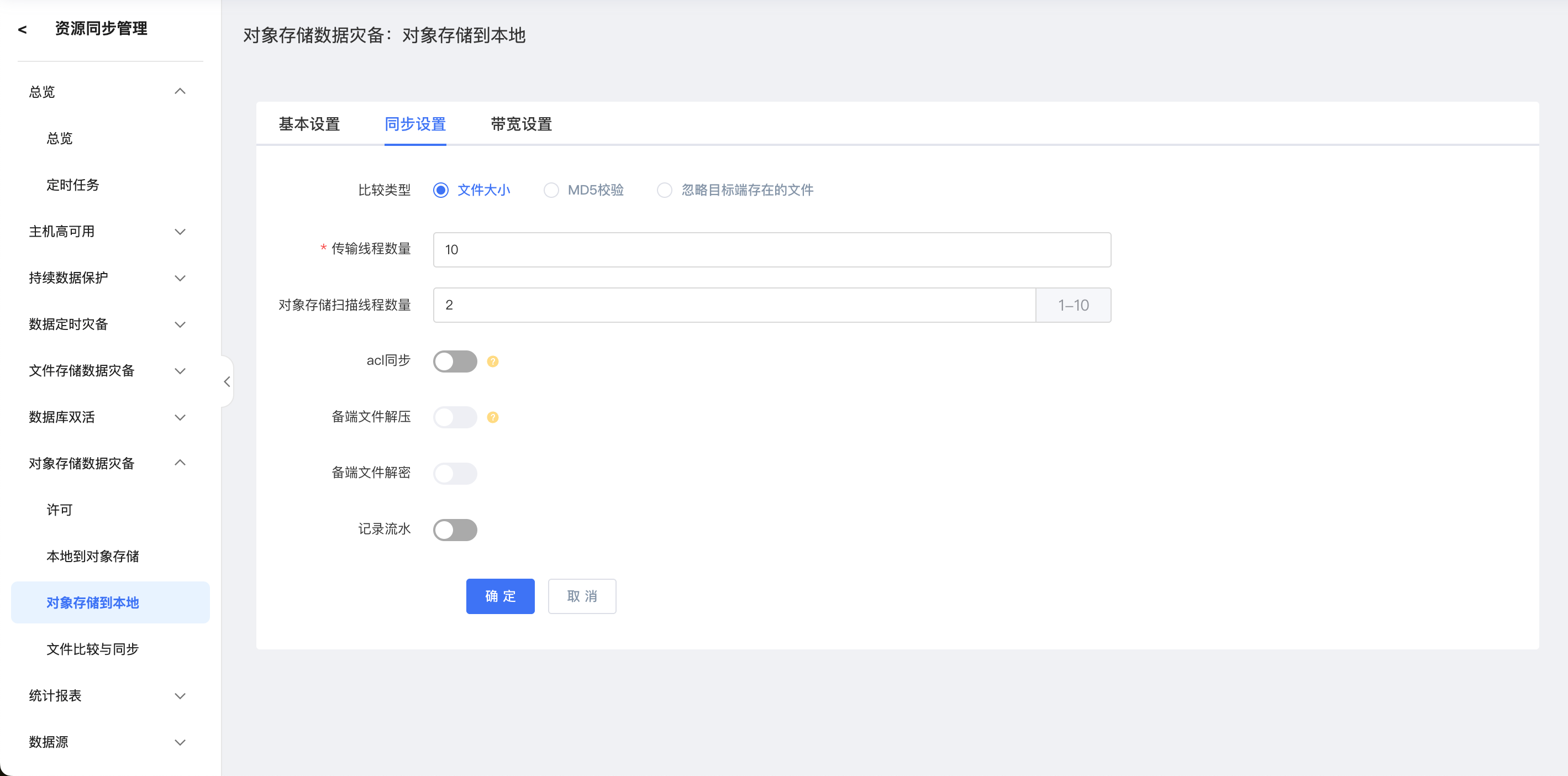 ACL同步:此配置默认关闭,开启后,在对象同步至本地的过程中,会记录对象的ACL信息一并同步到本地文件中(后续可以通过本地到对象存储规则将记录了ACL的本地文件同步到同构的对象存储中,完成ACL的同步)。