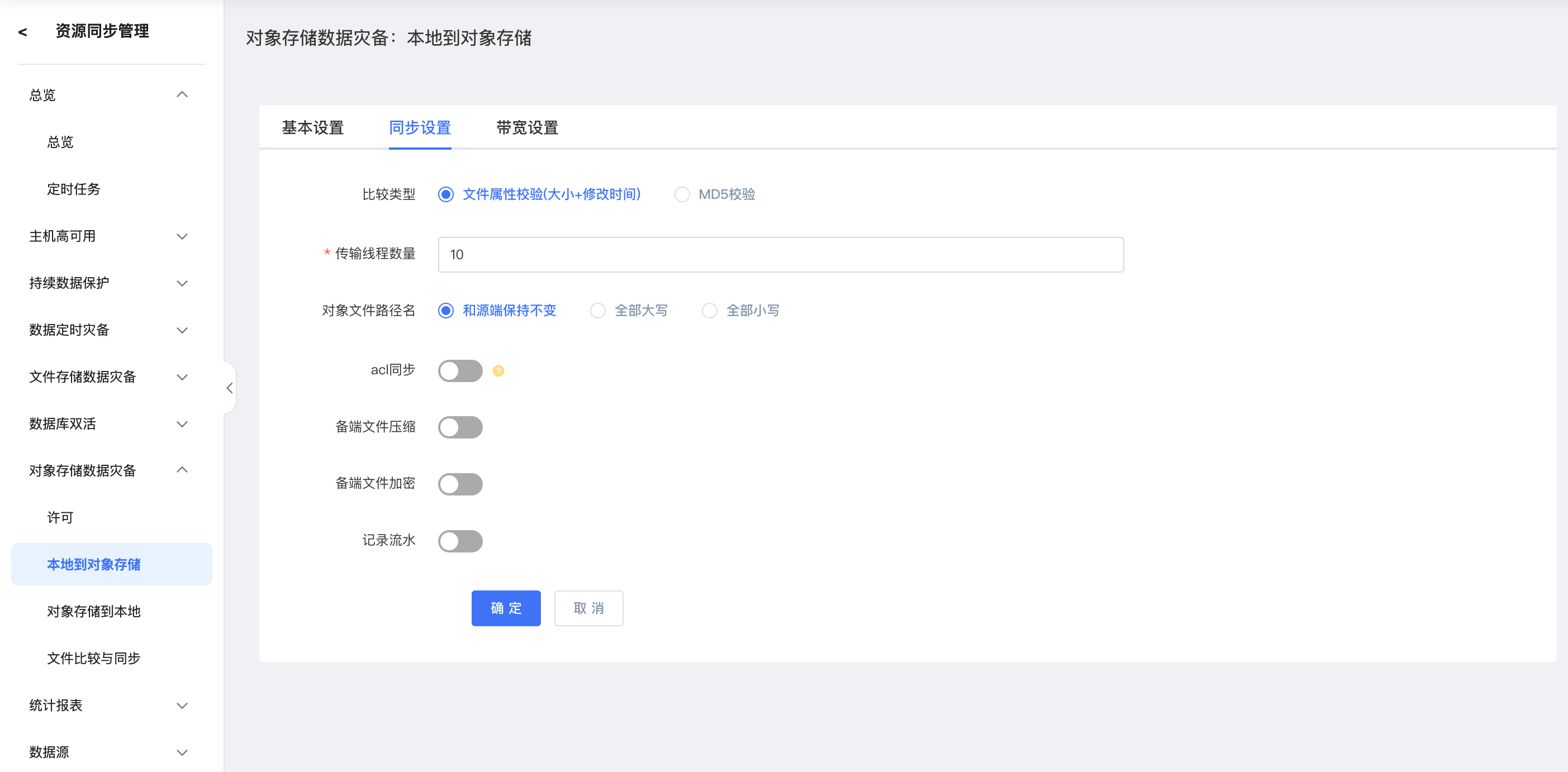 ACL同步:此配置默认关闭,开启后可将本地文件系统中记录有ACL信息的文件同步到目标对象存储中(需要先由对象存储到本地规则将带有ACL信息的对象同步到本地,并记录ACL信息)。