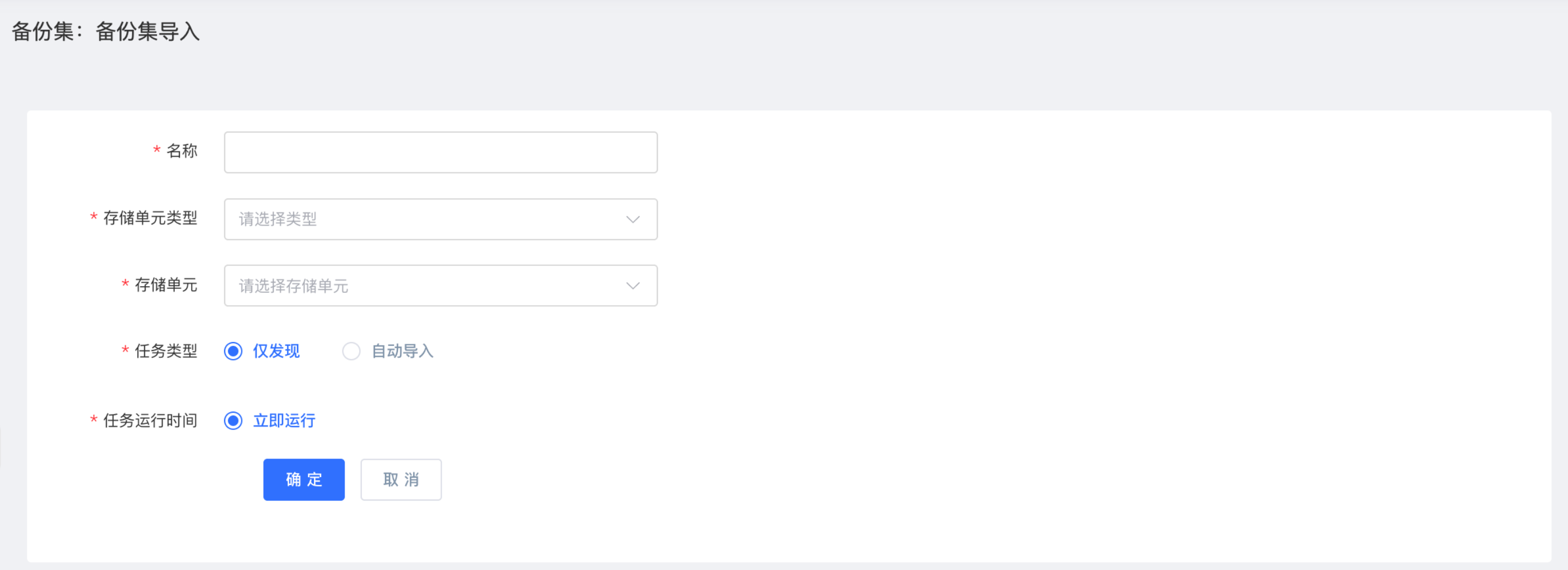 仅发现:仅扫描指定的存储单元以获取其备份集列表清单,备份集发现后需要人为手动导入。