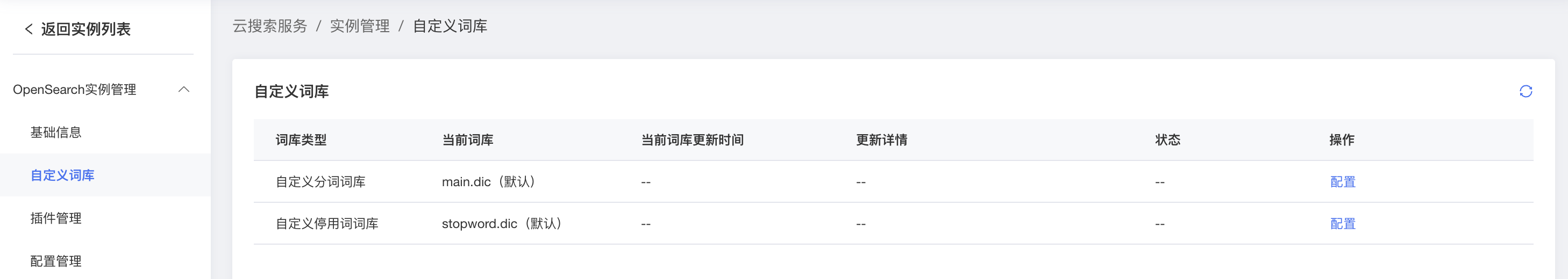 帮助中心云搜索服务用户指南OpenSearch实例创建及使用管理实例自定义词库管理