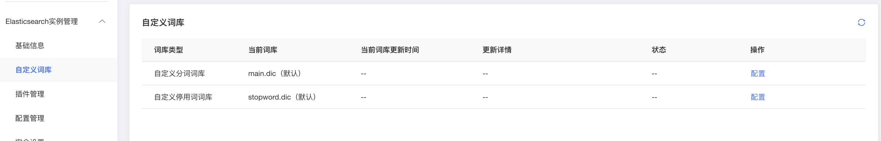 更新词库成功后,新词库大约2分钟生效,如需要更新词库文件,请在对应行点击“更新”,词库为覆盖更新;如需停用指定词库,请在对应行点击“停用”,停用后对应词库使用默认词库。更新词库文件和停用词库都会带来实例重启,请在业务闲时操作。新词库添加后,仅支持对新创建的索引进行分词,存量索引不会基于该词库进行重新分词。如需重新分词,请对目标索引进行重建索引。
