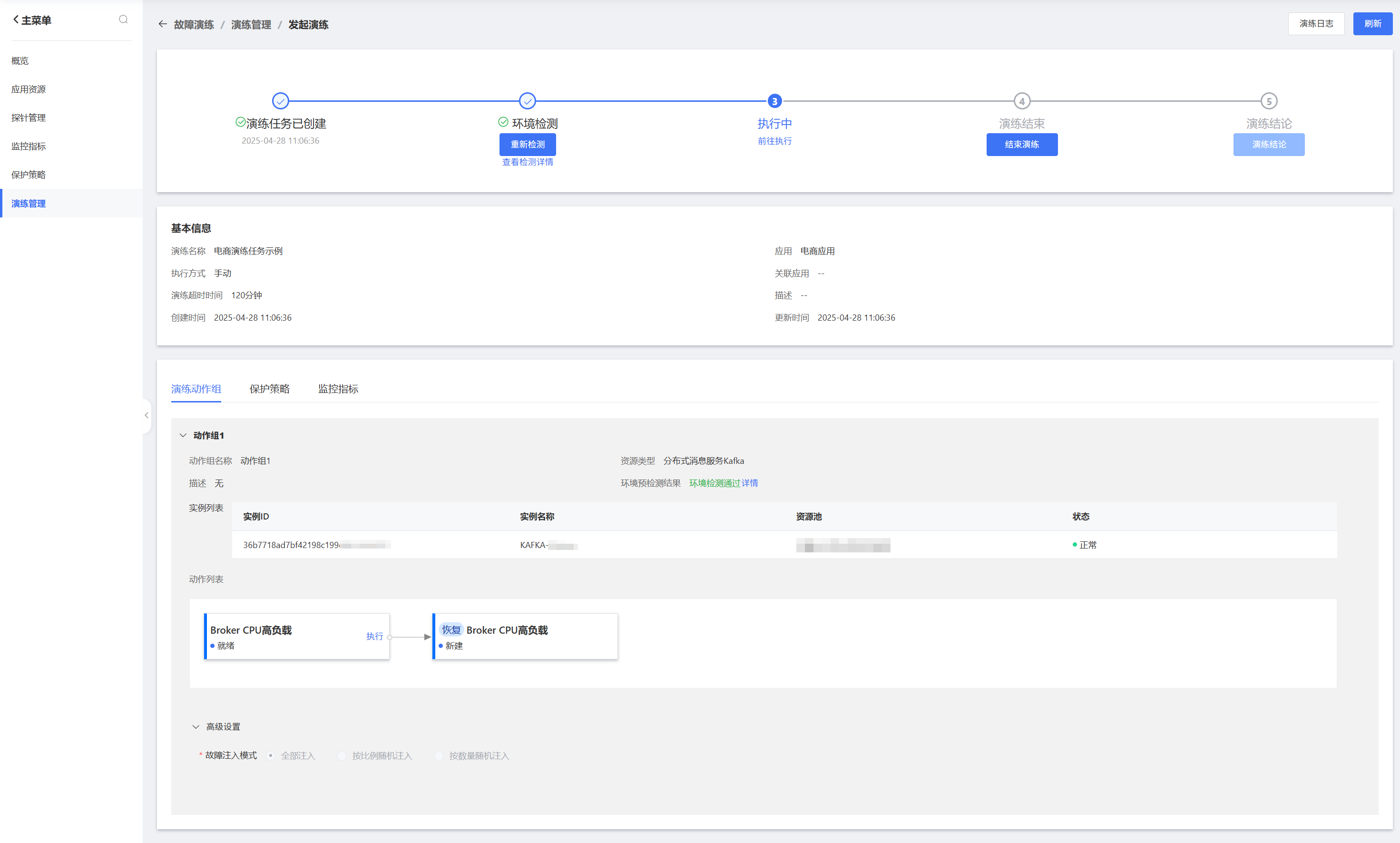 故障演练服务提供了分布式消息服务Kafka-Broker节点CPU高负载演练动作,通过模拟这种真实的故障场景,我们可以量化分析Kafka集群在Broker节点CPU受限时的表现,验证订单处理系统及其下游服务对Kafka异常的容忍度和应对能力,并提升团队在真实故障发生时的异常响应与恢复能力。