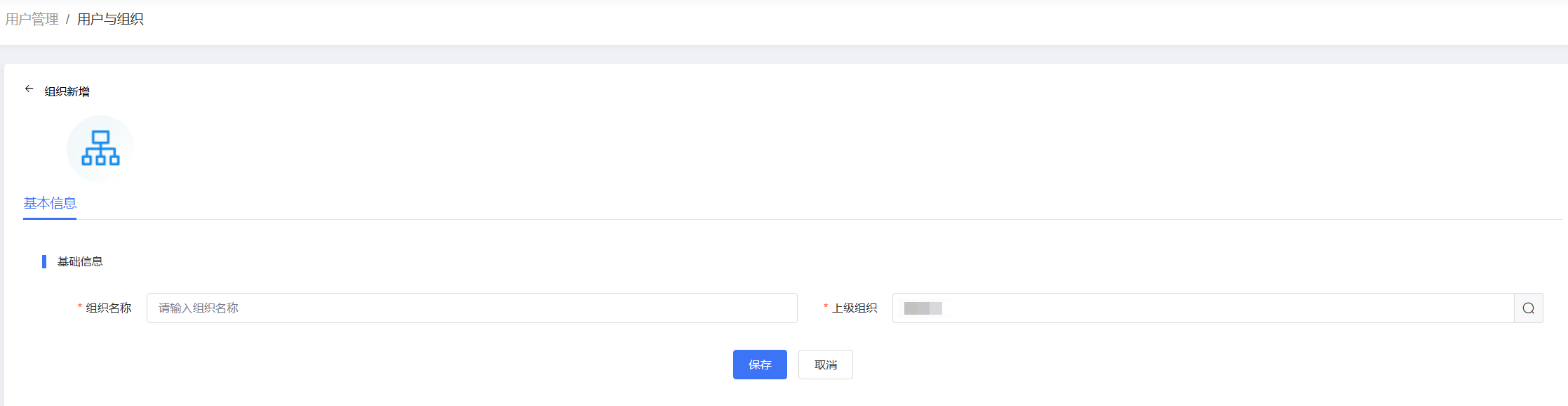 | 上级组织 | 新增组织默认位于根组织节点下面,可勾选变更上级组织,若是根组织则不允许变更。 | |