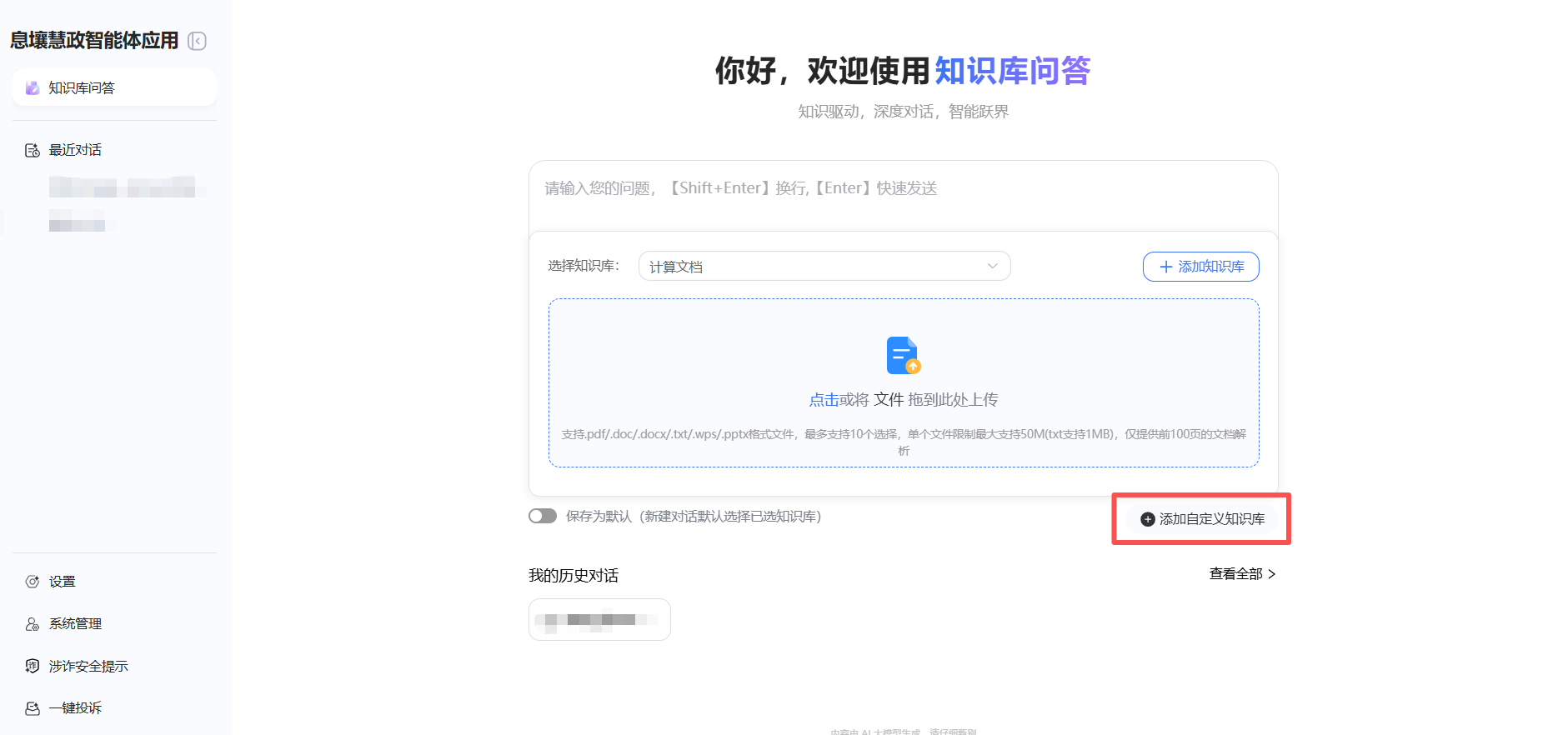添加自定义知识库:如果当前知识库范围不足以完成问答任务,用户可以添加自定义知识库,上传个性化内容作为索引,以满足问答需求。