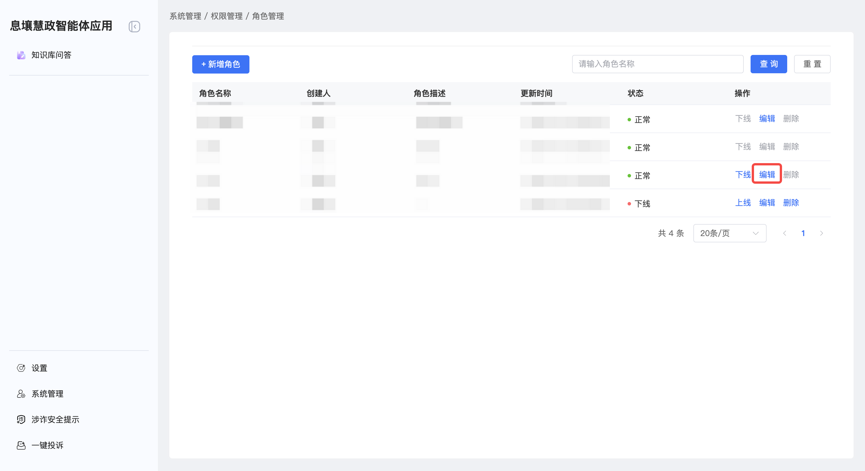 选择要编辑基础信息的角色,点击操作栏中的【编辑】按钮。