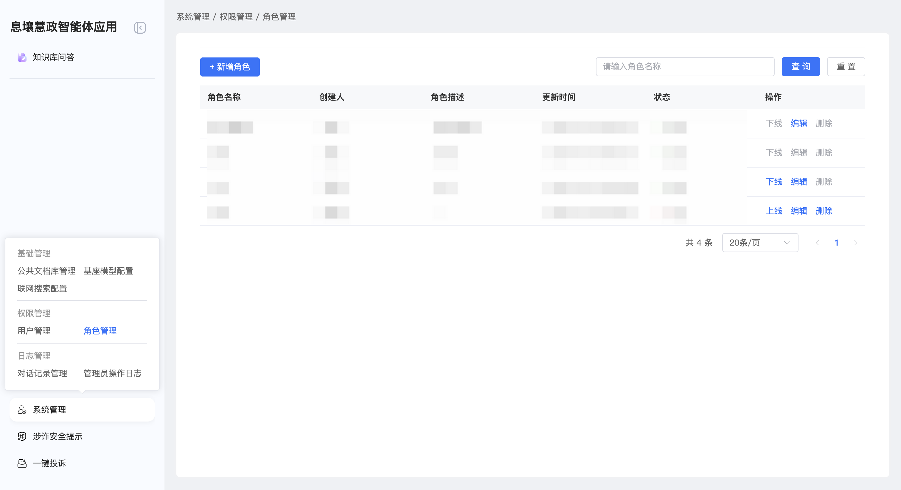 仅自定义角色可进行新增、删除与基础信息编辑。
