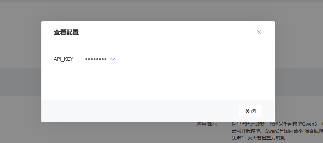 API认证(api_key):在应用托管租户控制台,进入【应用实例】,进入应用详情,点击查看配置,获取的api_key。