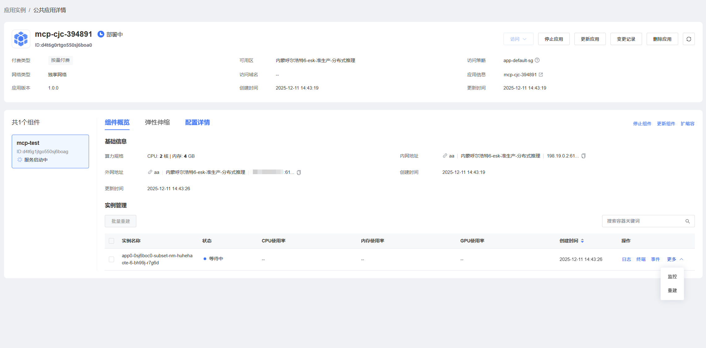 可进入实例详情页,可查看访问的域名或地址,复制链接到浏览器中可访问对应服务。