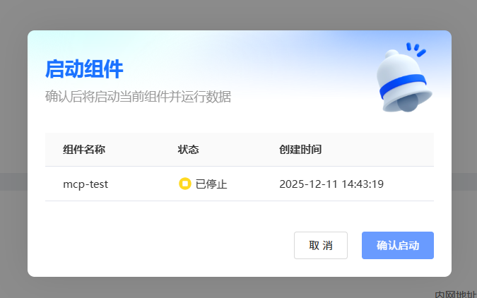 在进入启动组件操作弹窗后,点击【确认】完成启动操作。