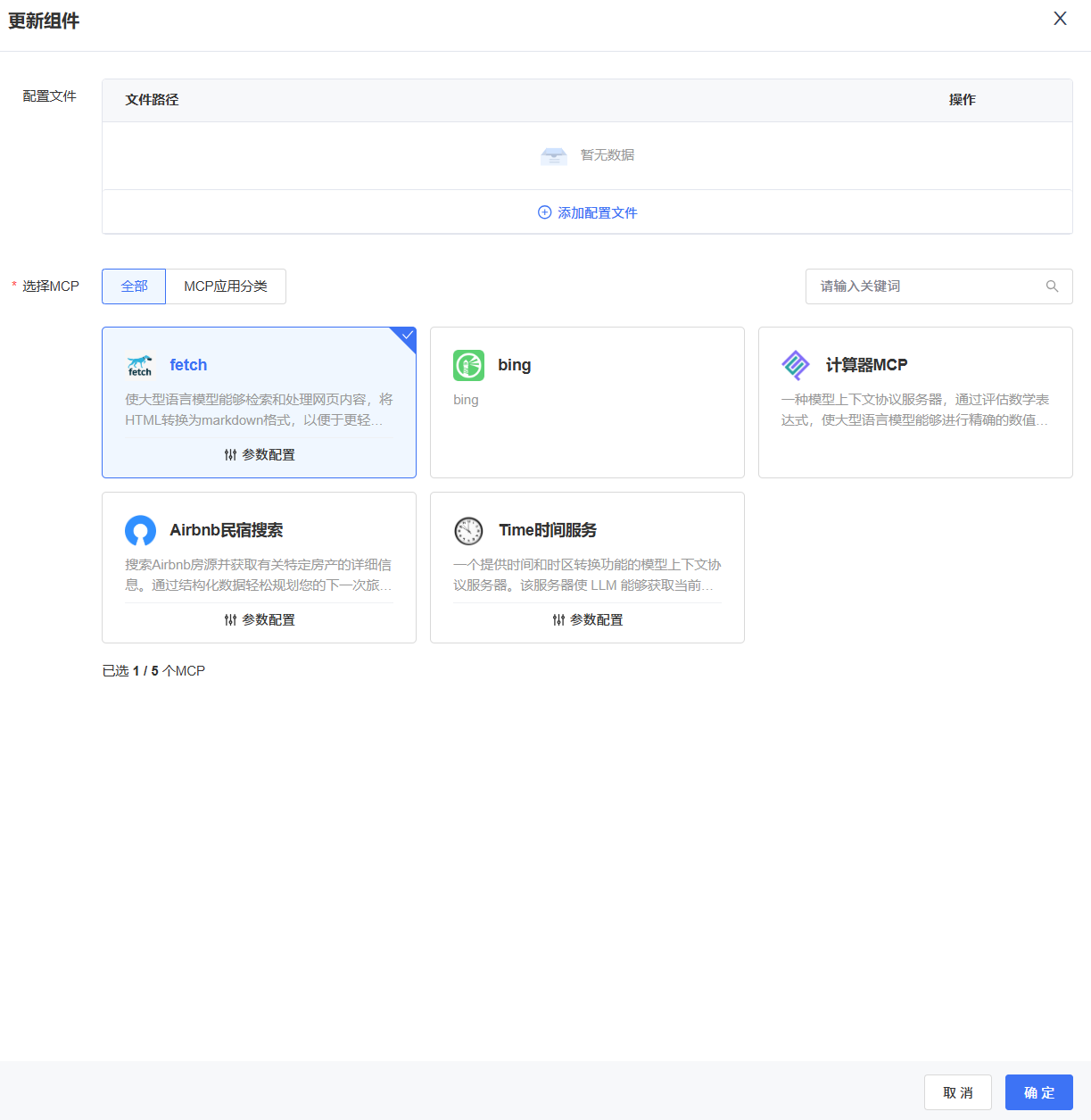 通过应用/MCP市场部署的应用,与第一次应用部署时参数一致,更新参数如下。
