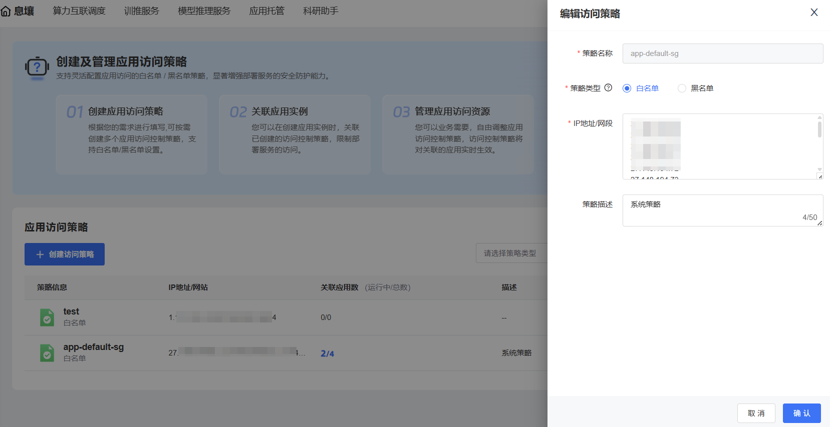 进入应用托管租户控制台。选择【应用访问策略】,进入应用访问策略列表页面。