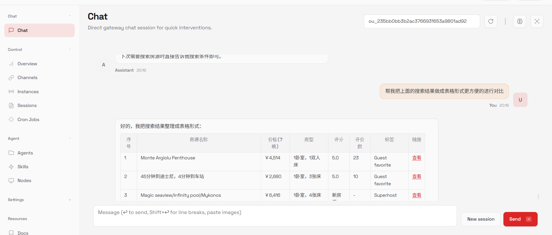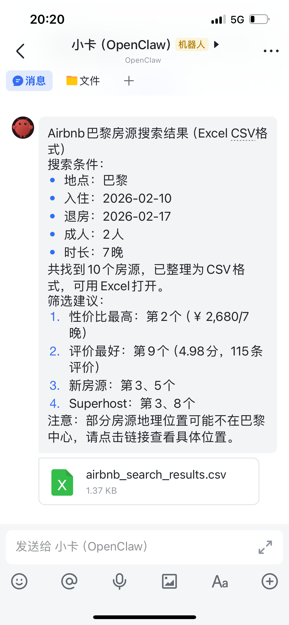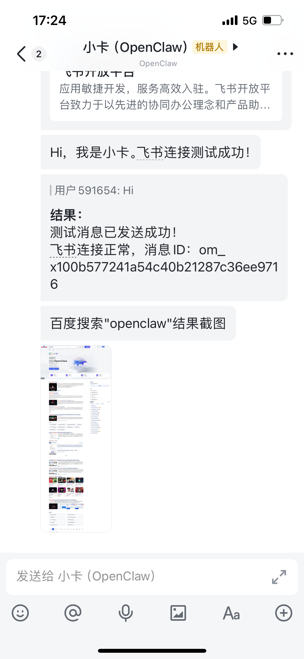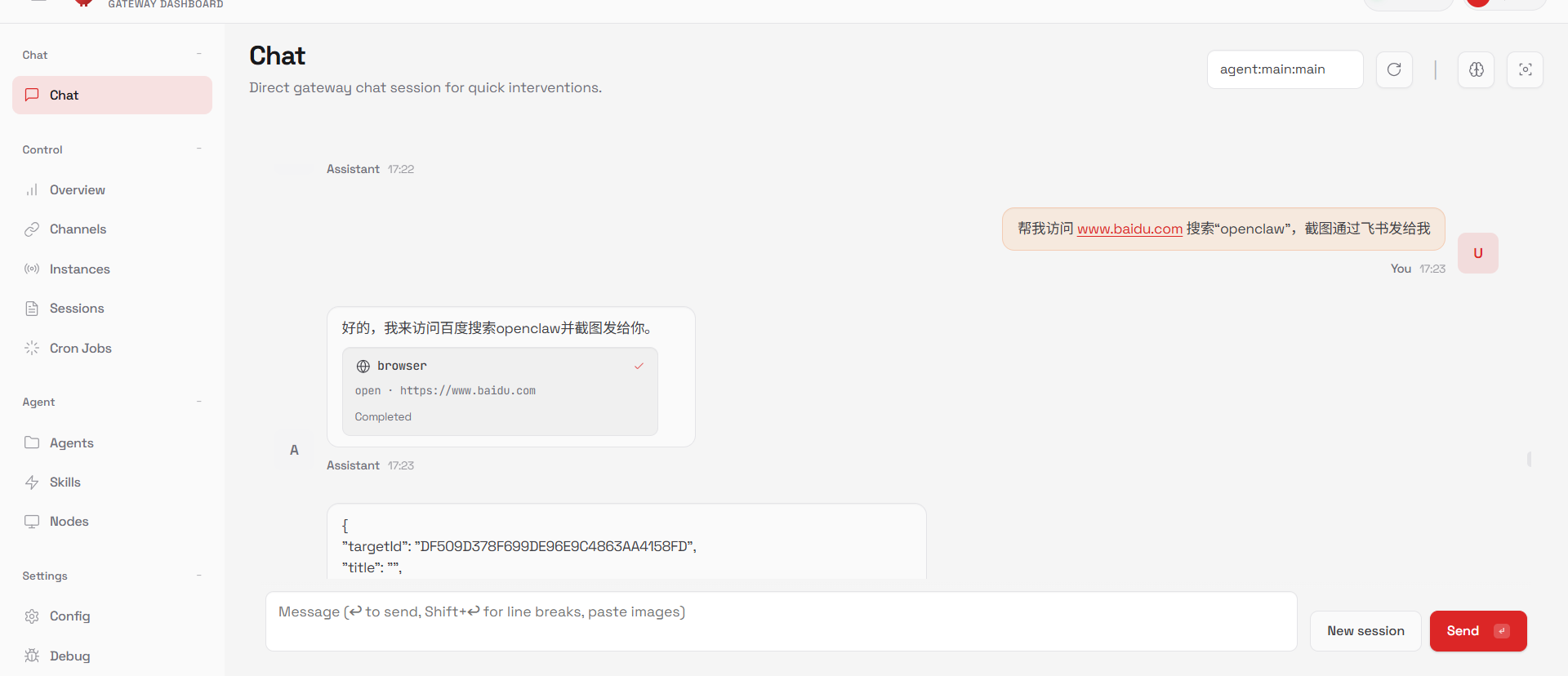 对接钉钉、飞书等通讯工具后,可通过 “@机器人 + 指令” 触发相关技能,实现消息推送、任务分配、文件共享等功能。