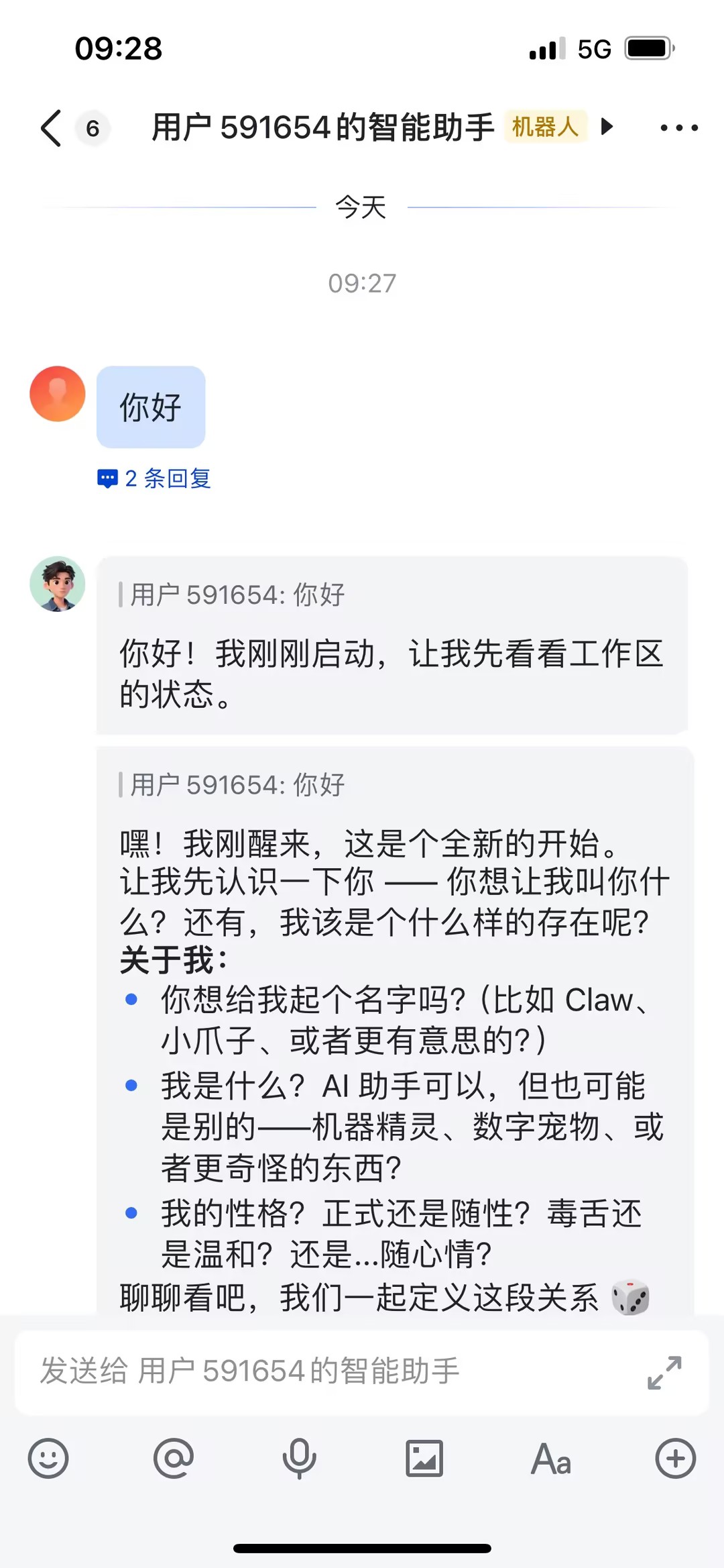 3.创建完成即可开启与飞书机器人对话。