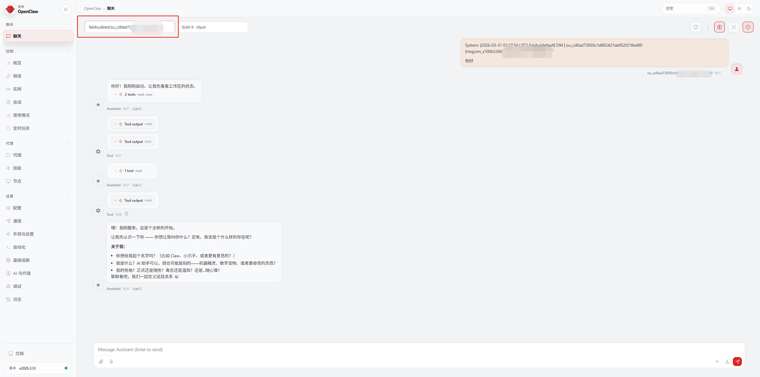 通过管理面板配置飞书通道