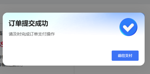 勾选相关服务协议,点击【确认订购】按钮,提交表单后提示支付弹窗,跳转页面完成支付。