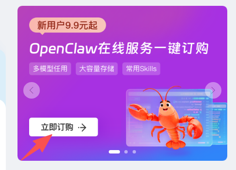 2.点击OpenClaw活动卡片上【立即订购】按钮,进入套餐订购页面。