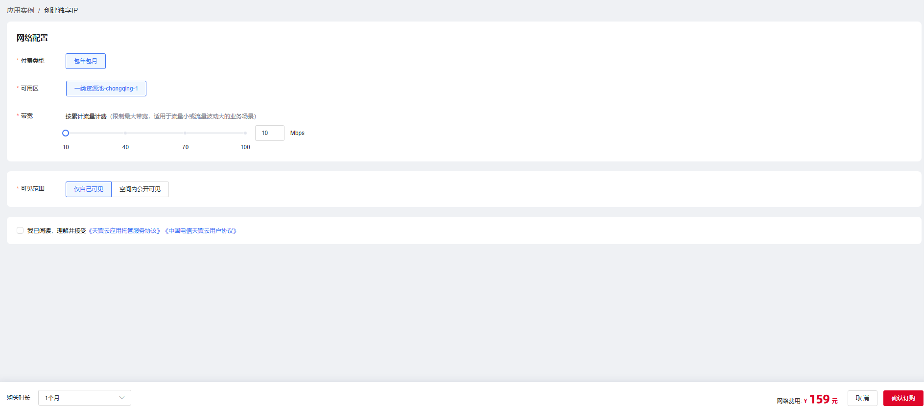 点击【确认订购】,完成应用与独享 IP 的绑定。