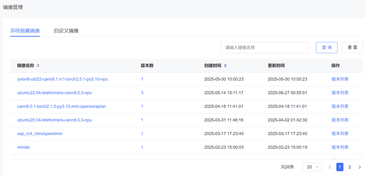 训推服务预置了一些常用镜像,可以在创建任务时直接使用