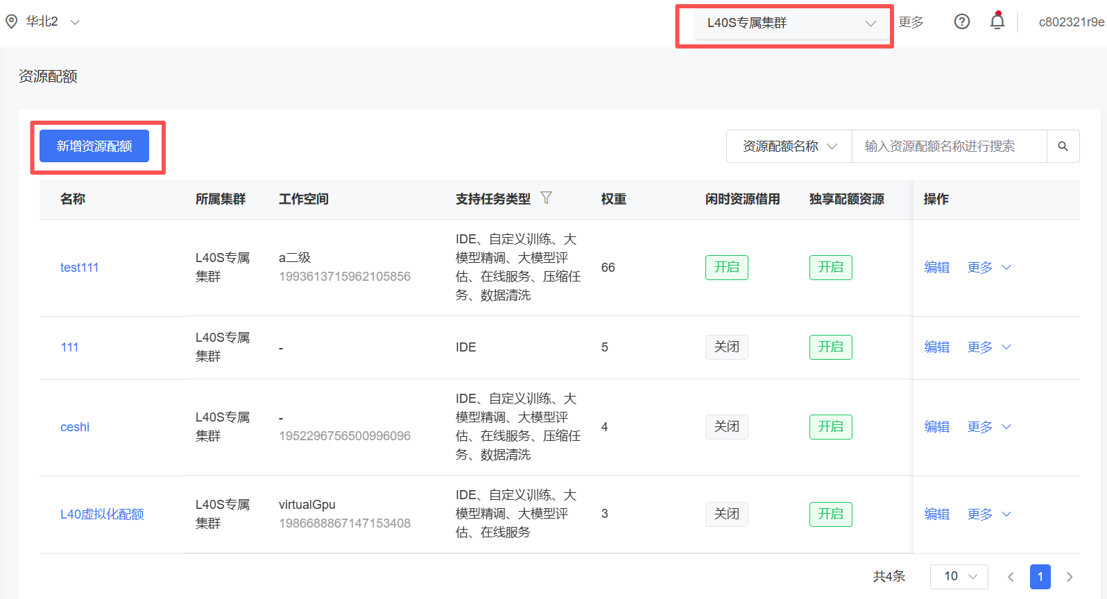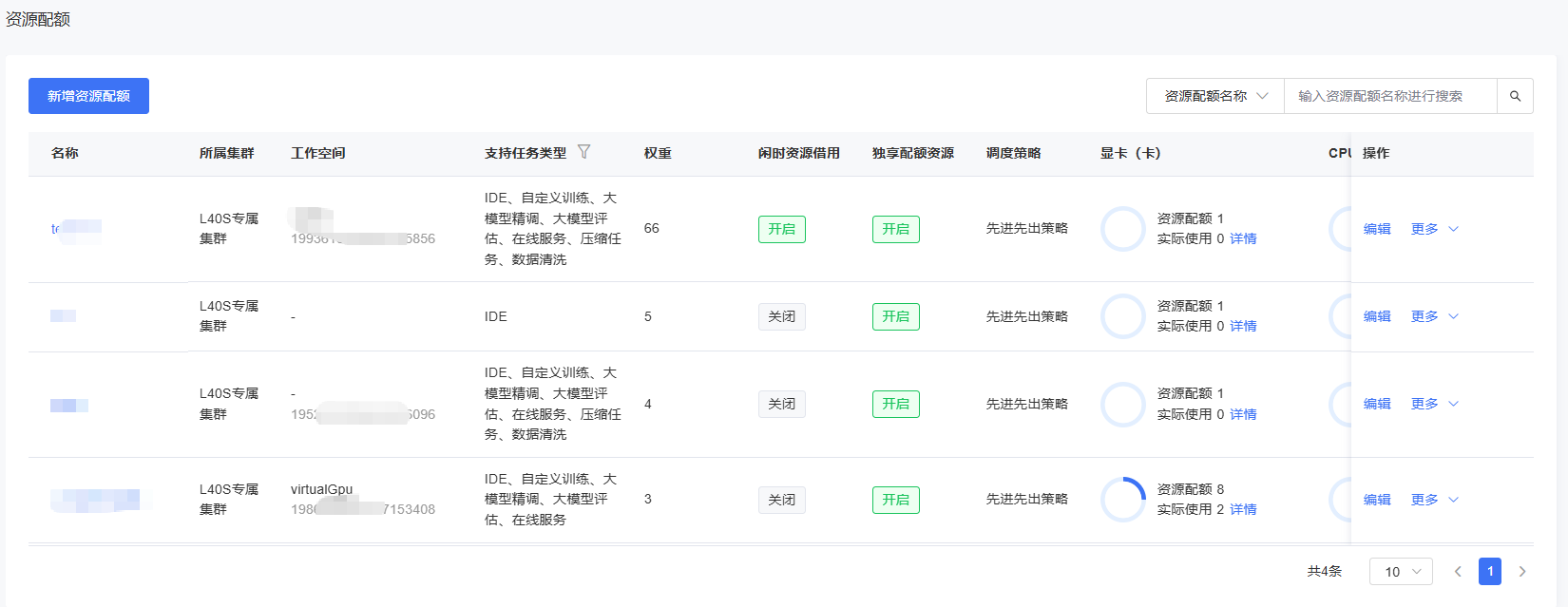工作空间:查看该资源配额属于那个工作空间,资源配额只有分配给工作空间后才可以在工作空间内使用