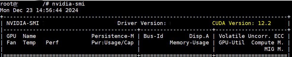 使用以下命令,查看当前环境依赖的CUDA版本,输出结果如下图所示。