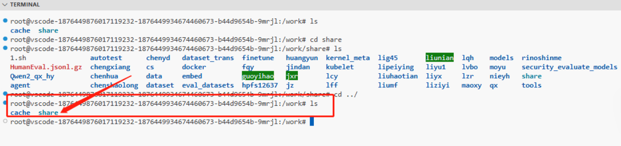 1、cache存储:开发机默认自带cache持久化存储目录。每个用户的每一个开发机都默认赠送50GiB的/work/cache目录。