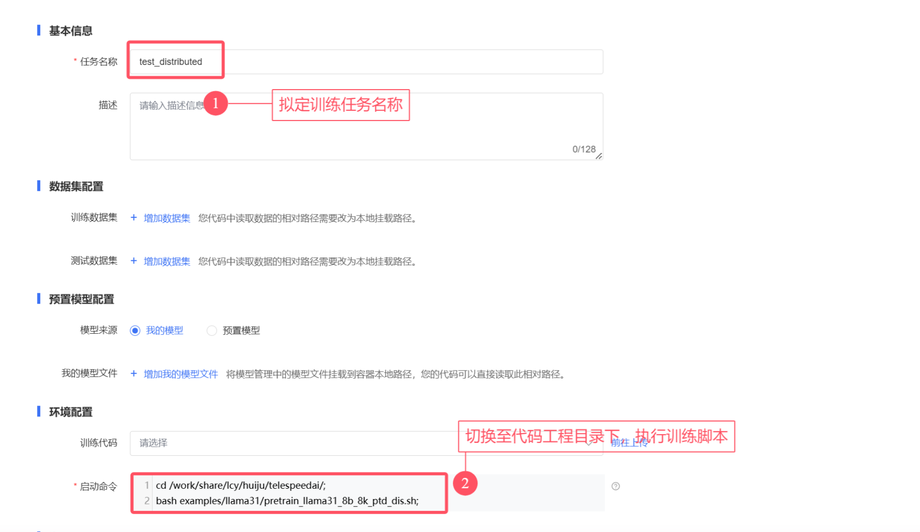 torchrun $DISTRIBUTED_ARGS telespeed/run/llama31/pretrain_gpt.py按照下图的步骤启动训练任务: