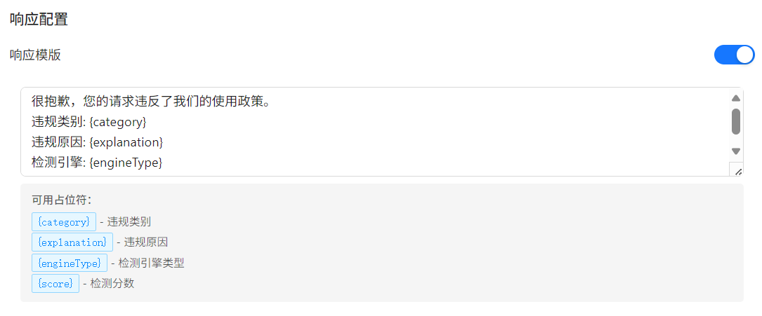 | 模版内容 | 设置违规时的响应文本。 |