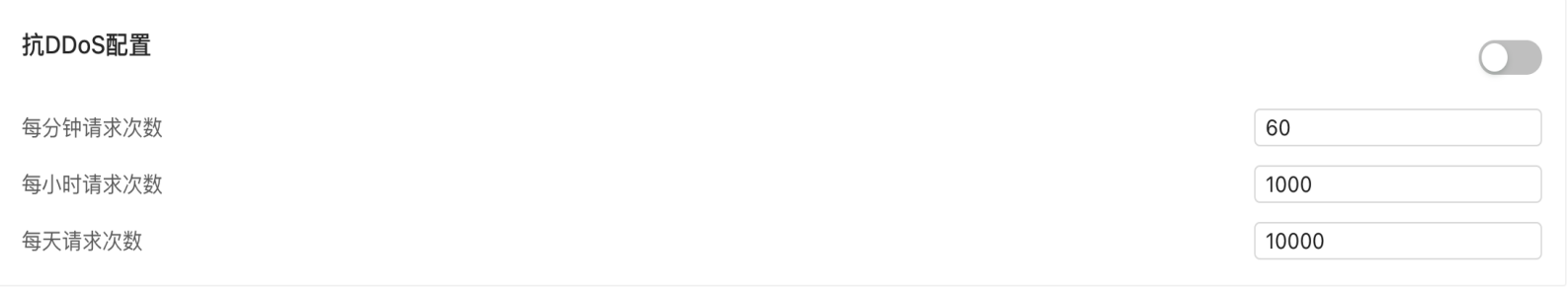 | 开关 | 启用/禁用:控制是否启用抗DDoS功能。 |