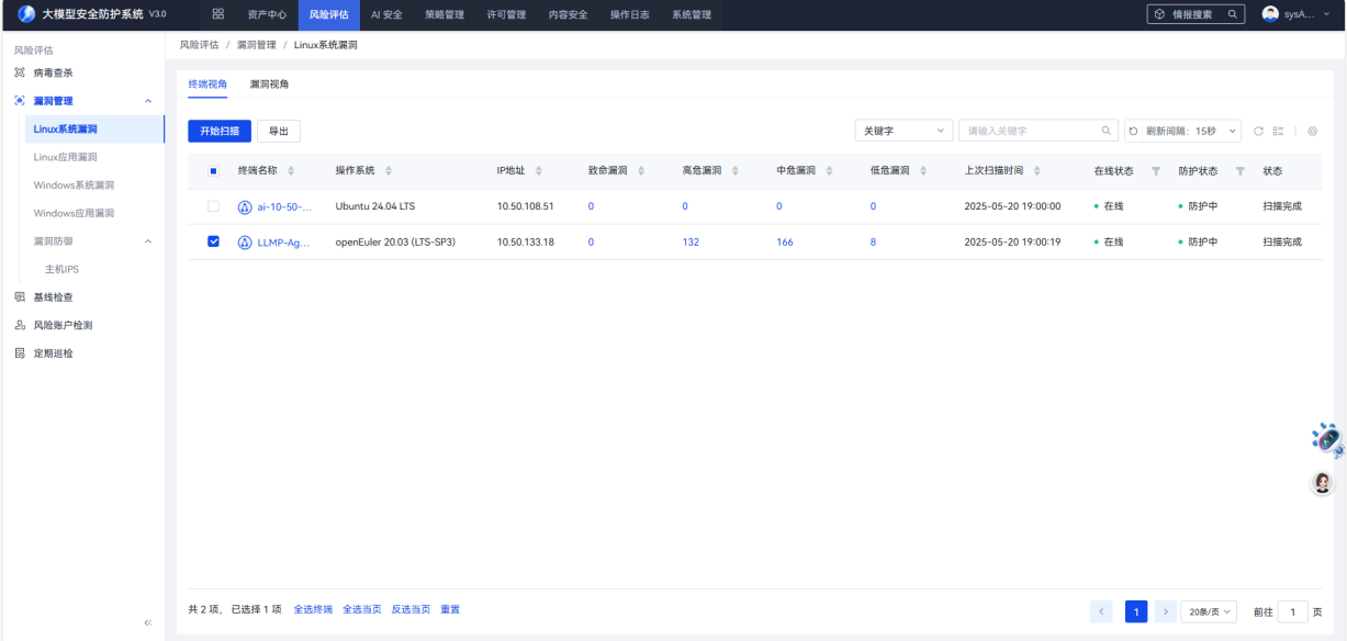 在菜单栏选择“主机安全 > 漏洞管理 > Linux系统漏洞”。