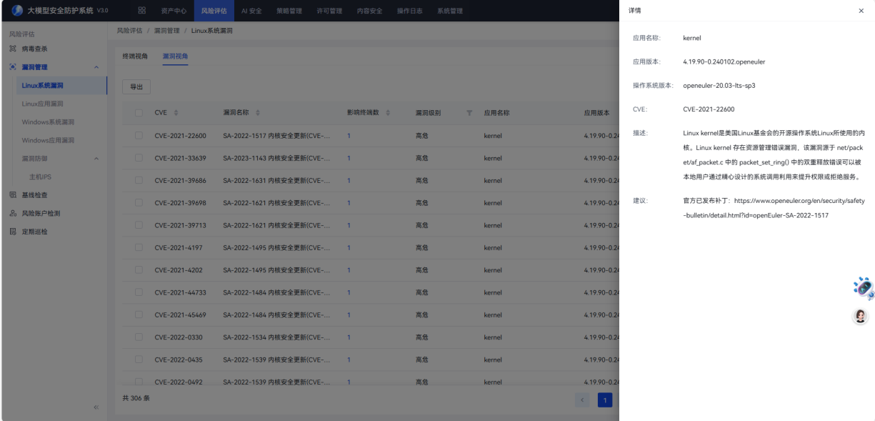 选择“漏洞视角”可查看当前漏洞影响终端数及漏洞详情。