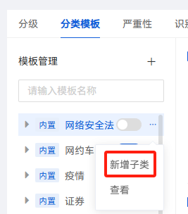 在菜单栏选择“内容安全 > 语料安全 > 业务设置”,选择“分类模板”页签。