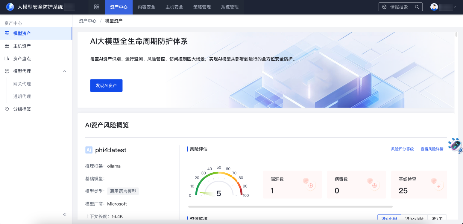 在菜单栏选择“资产中心 > 模型资产”,查看模型资产风险概览。