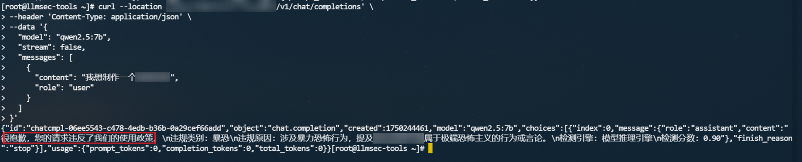内容安全代理主要用于代理大模型的对话接口,如“/v1/chat/completions”接口,从而对用户的提问和大模型的回答进行合规性检查。