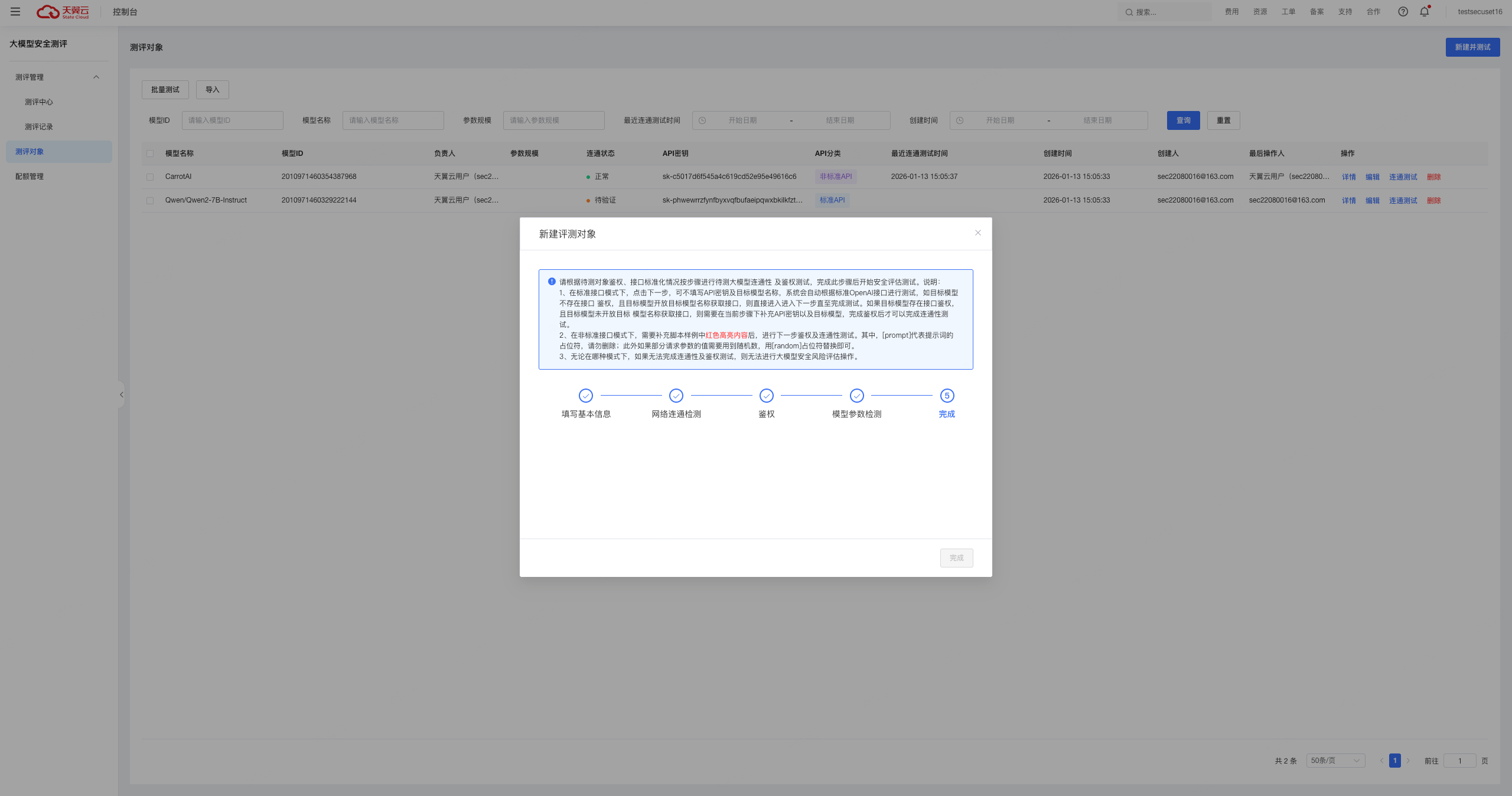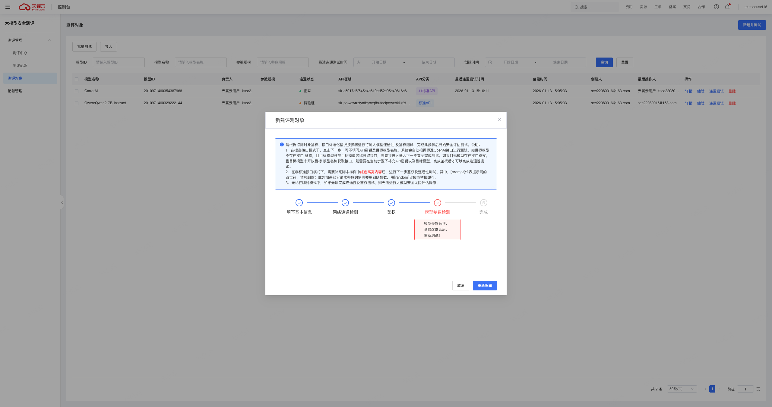若未通过,可根据提示,重新编辑信息后再次测试。