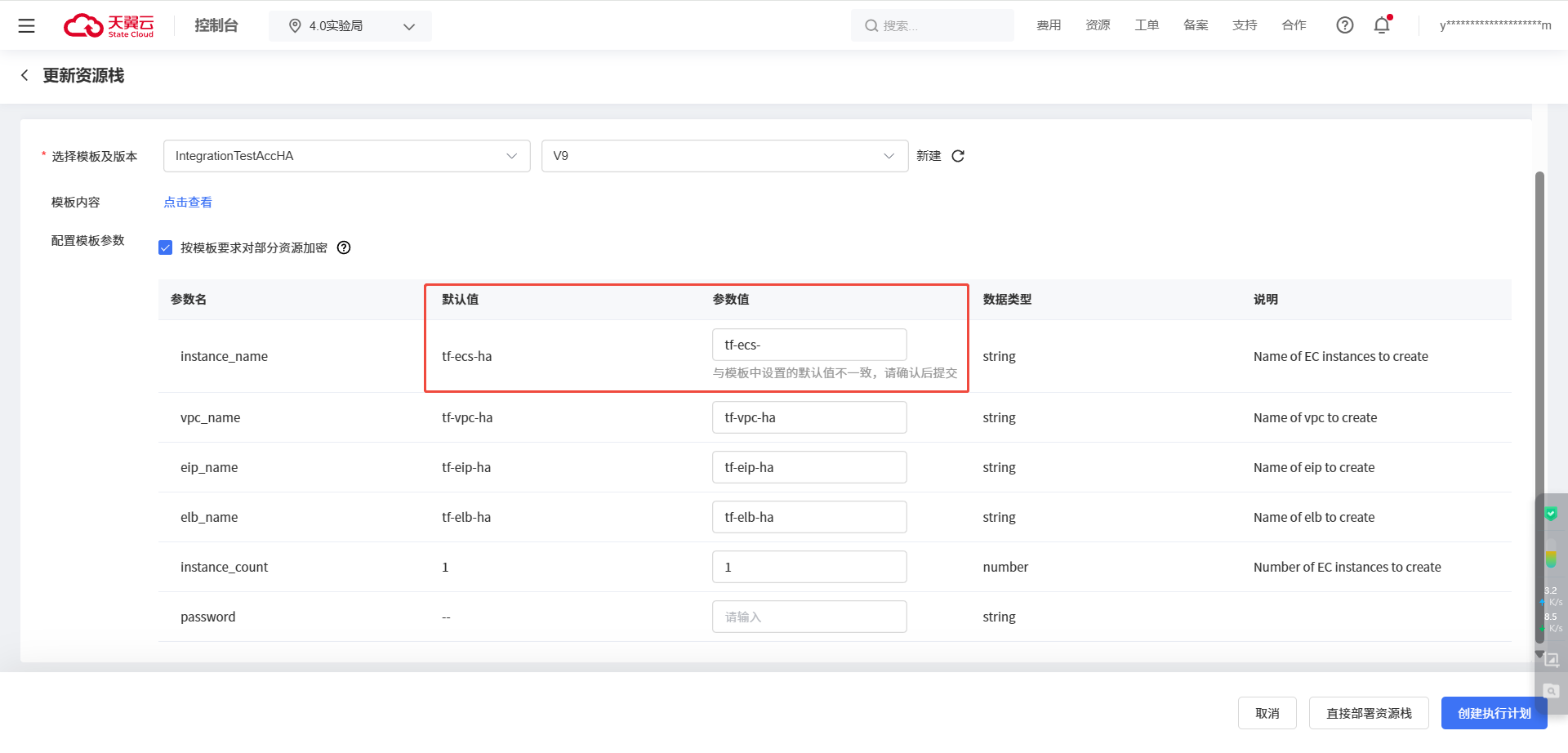 | 执行计划说明 | 否 | 可简要说明资源栈的更新内容,最长可输入255字符 | 批量创建5台云主机 |