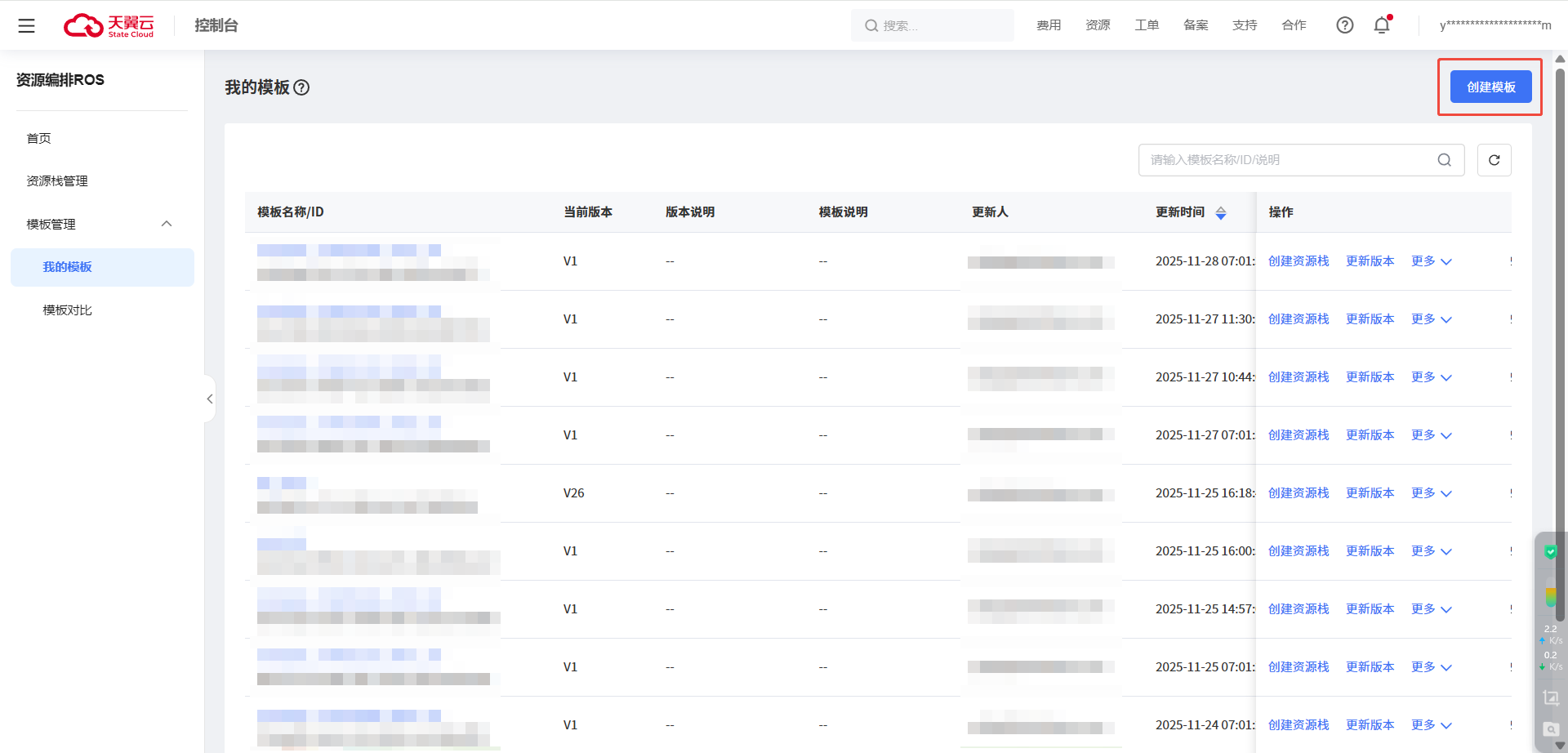 在我的模板页面,单击创建模板。