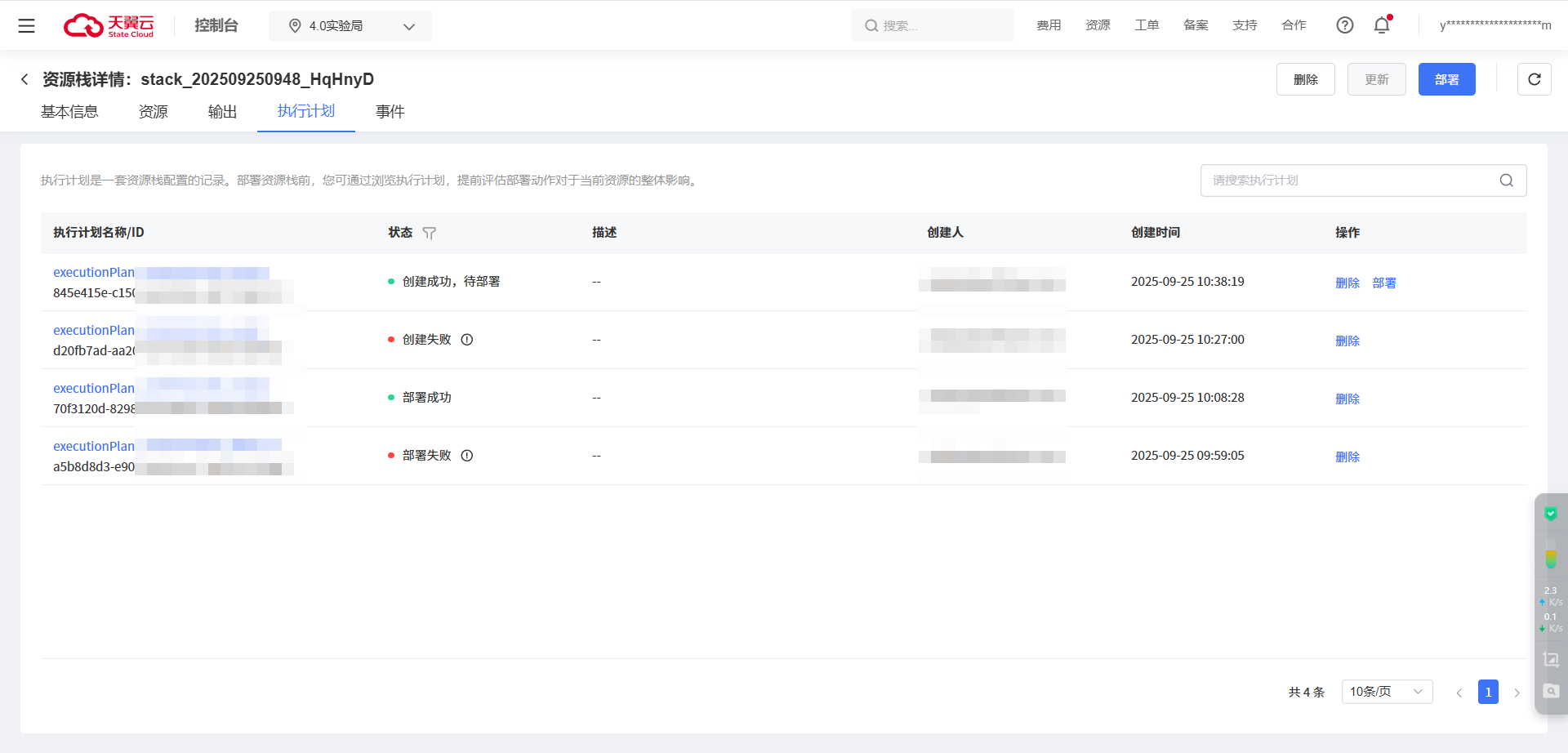 删除执行计划:删除执行计划仅删除执行计划记录,不影响资源栈的运行。您可放心删除执行计划。