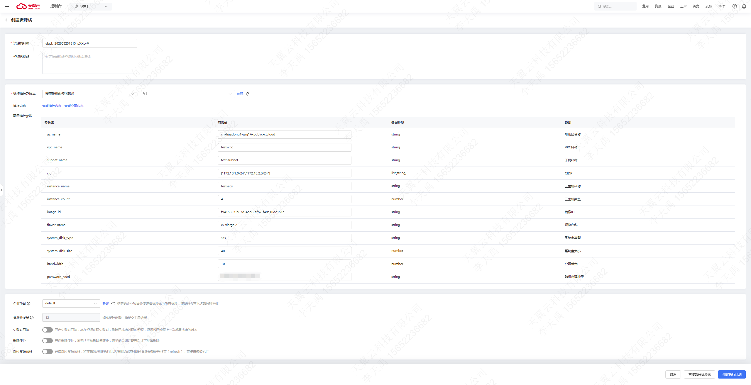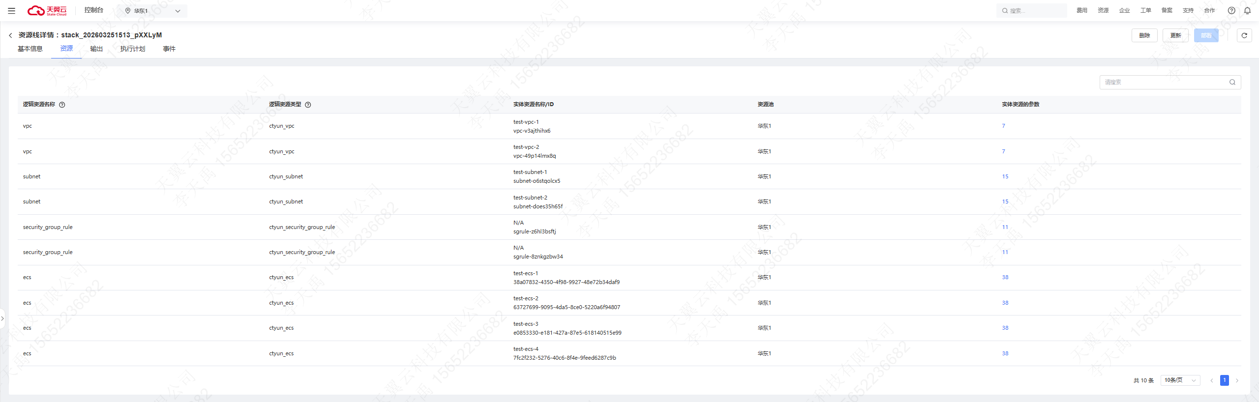 本方案基于天翼云 ROS(资源编排服务)控制台,采用 Terraform Module 模块化设计,实现赛事用云主机全流程自动化批量部署。用户仅需导入模板、配置核心参数,即可一键完成 VPC、子网、安全组规则、云主机、弹性 IP 等全套网络与计算资源的自动化创建,全程无需手动操作。