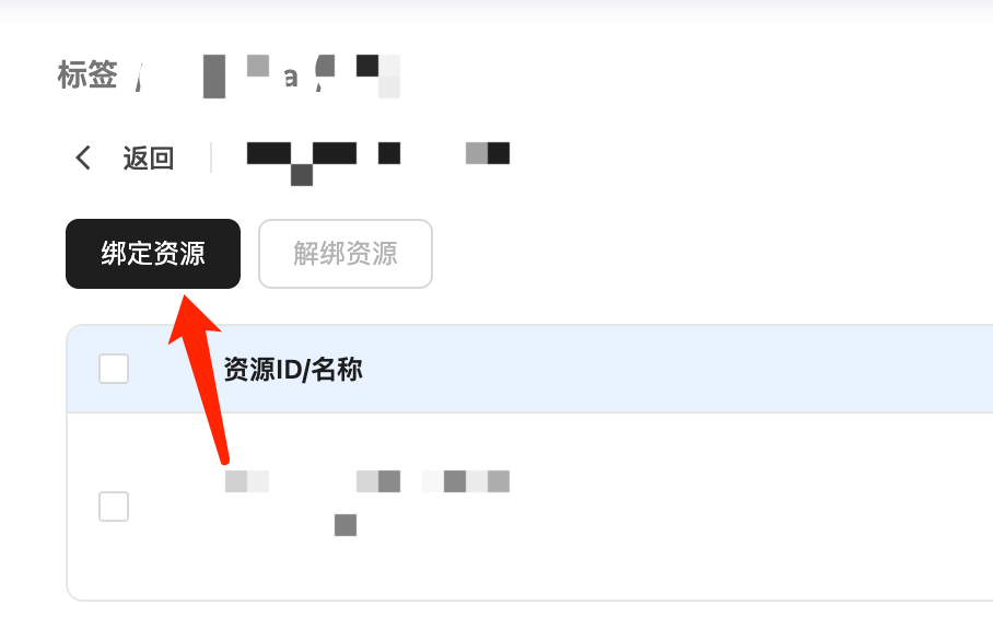 2、基于标签绑定资源:找到目标标签键值,点击“绑定资源”。
