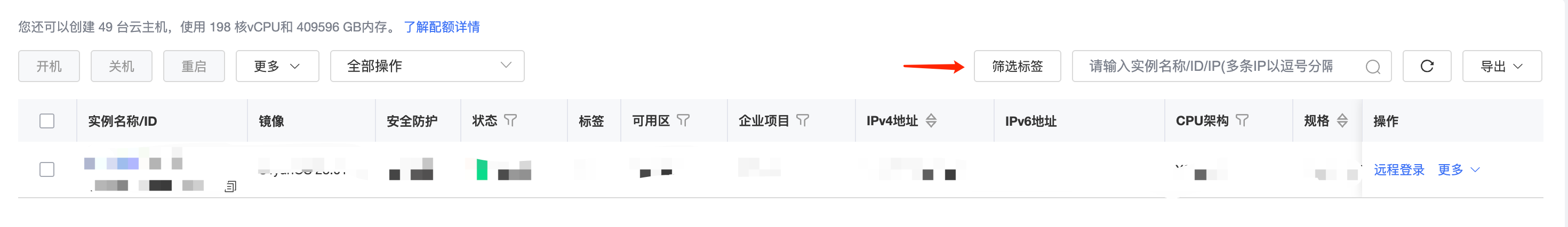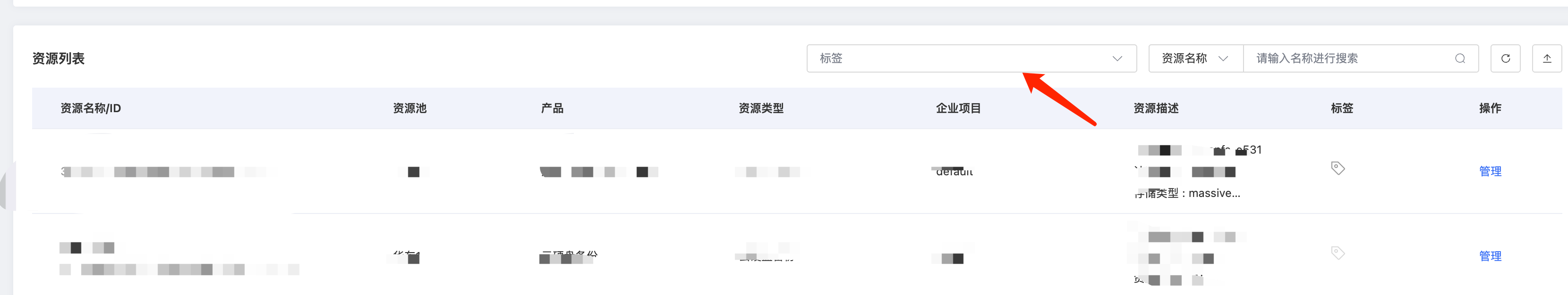 2、资源列表上方的标签筛选入口,选择需要筛选的标签键值数据。