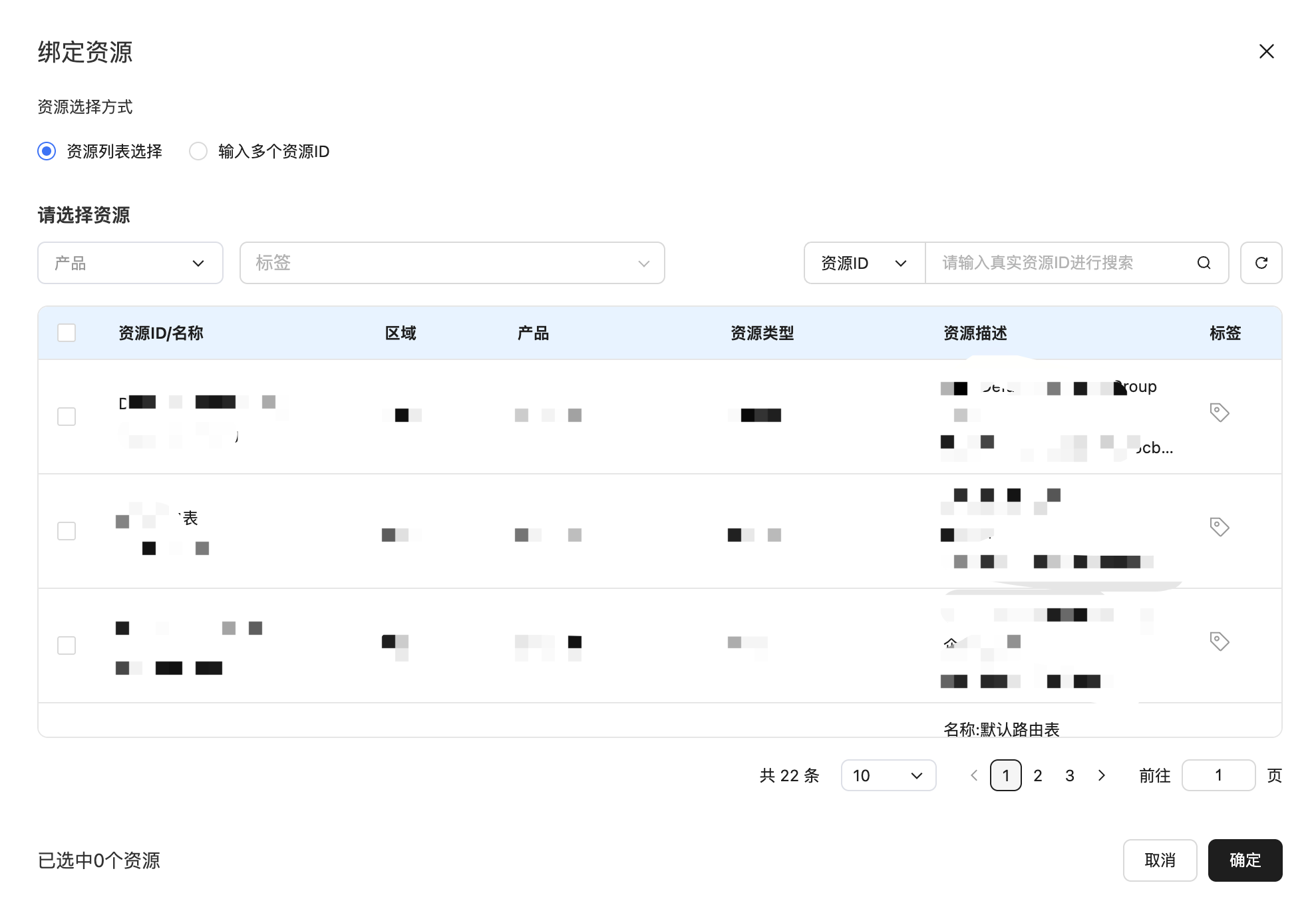 2、可绑定的资源清单为账号下已开通的资源。