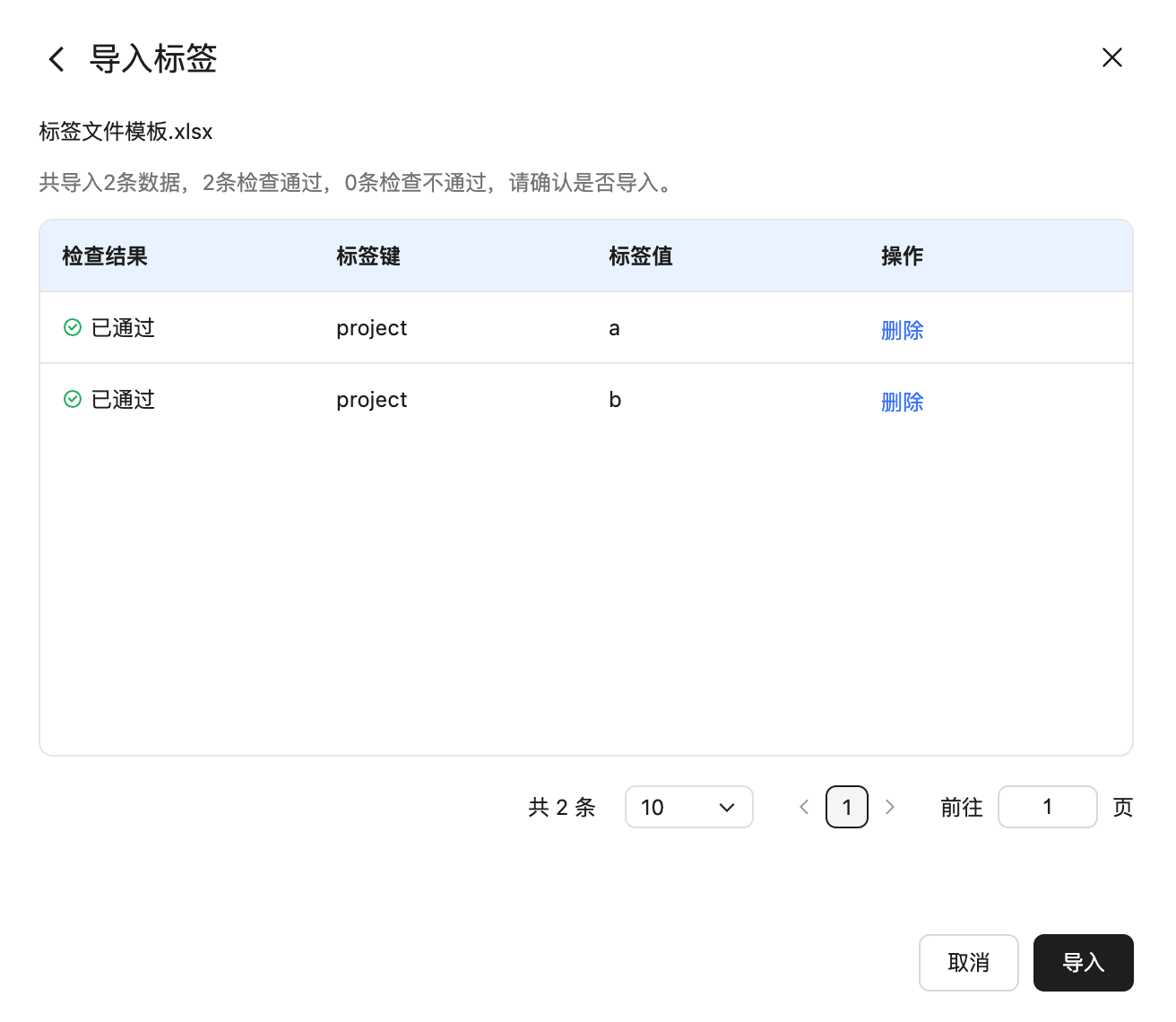 4、检查导入标签数据,确认无误后点“导入”完成标签创建。