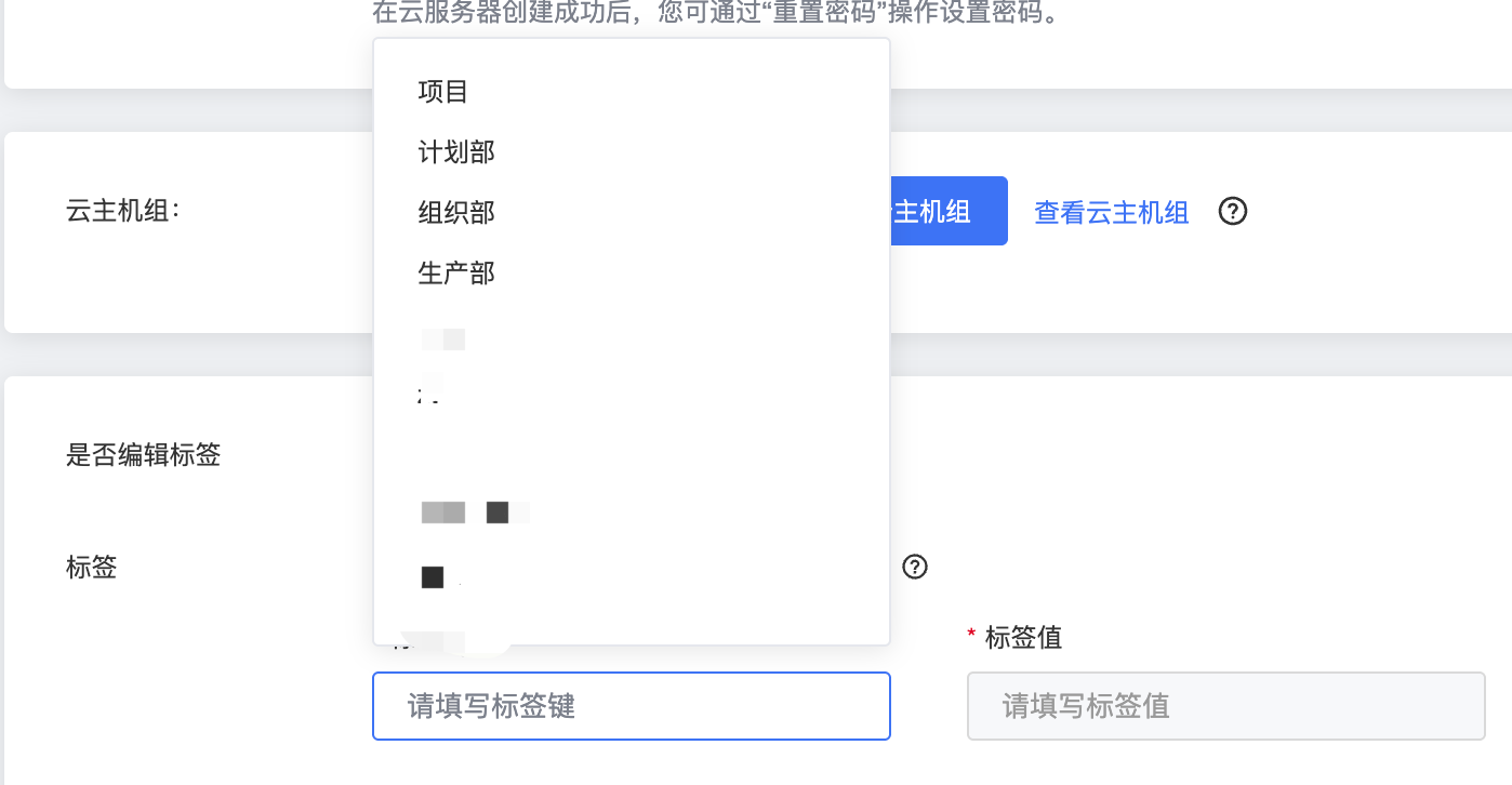 2、进入创建云主机页面,将“是否编辑标签”打开,绑定标签时选择已经创建好的标签。