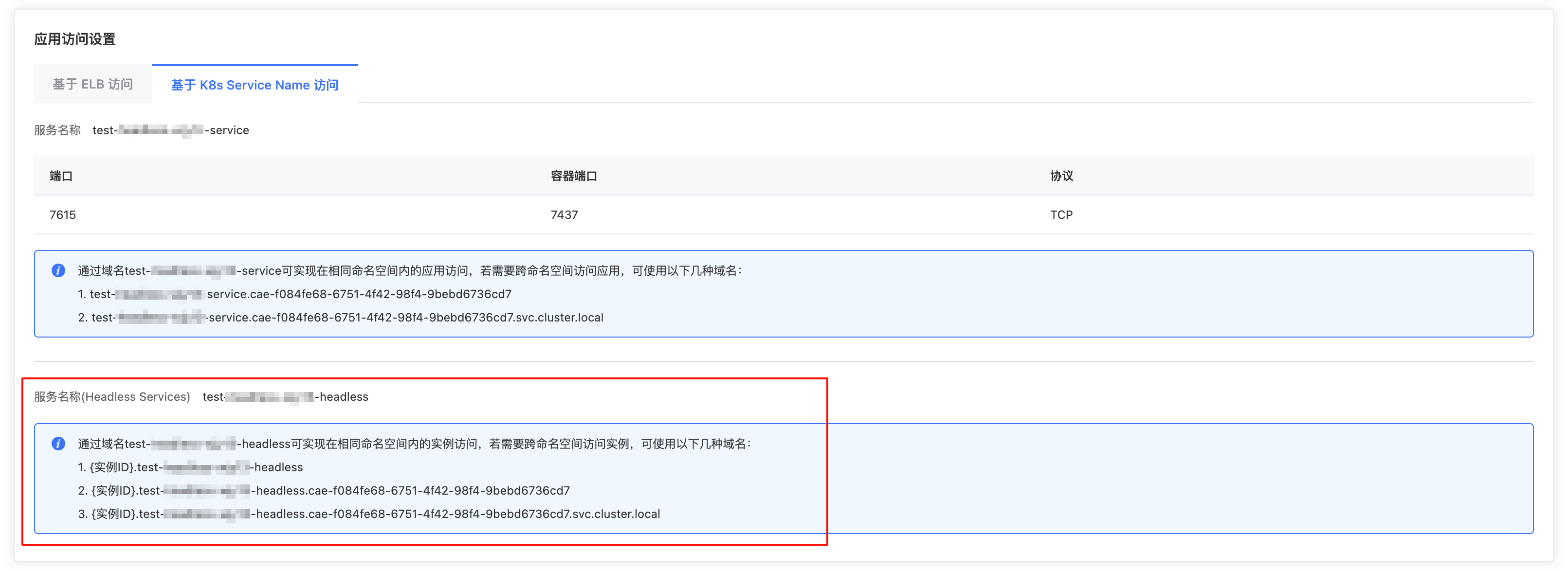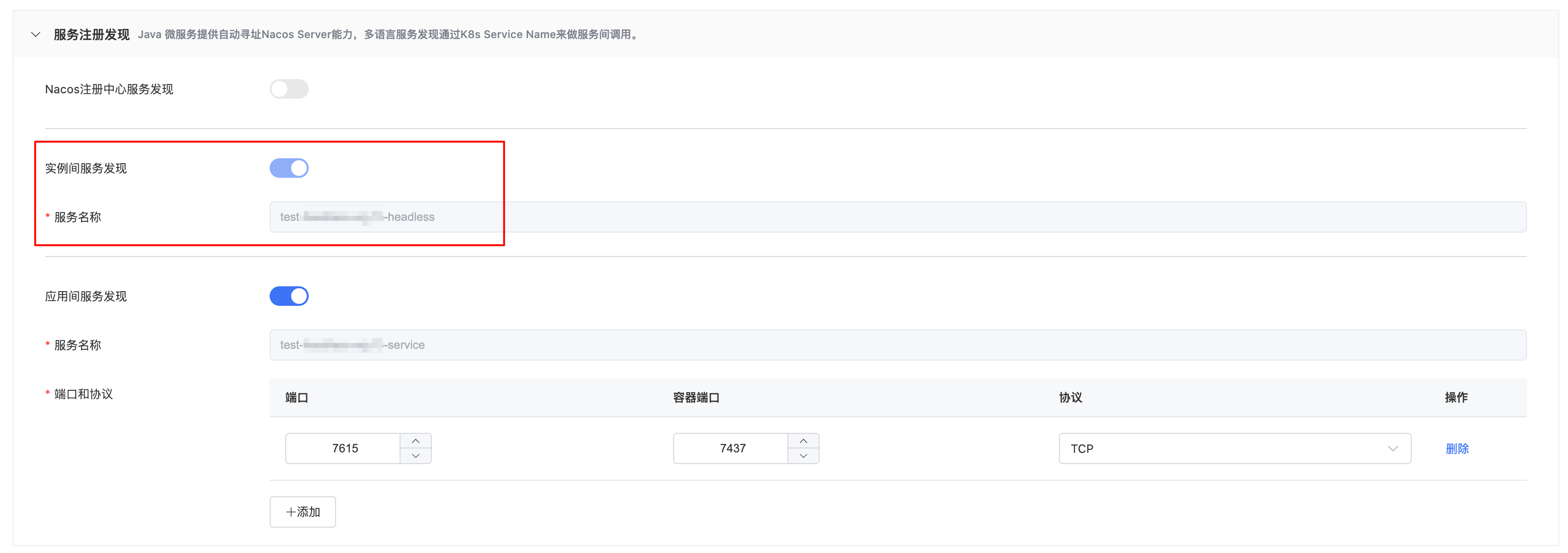 部署有状态应用时,高级设置页面的服务注册发现区域,可以配置实例间服务发现。