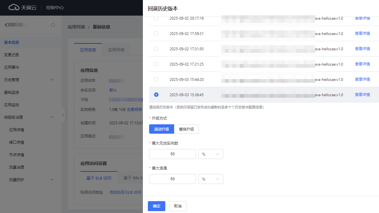 云应用引擎创建完成后,还需不断迭代升级,如果升级的版本出现问题,需要回退至所需的历史版本。