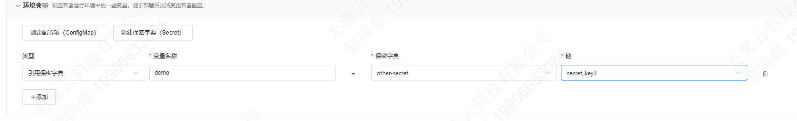如果您挂载了全部键,每个键的变量名称默认和所选保密字典的键名称保持一致,不可自定义。
