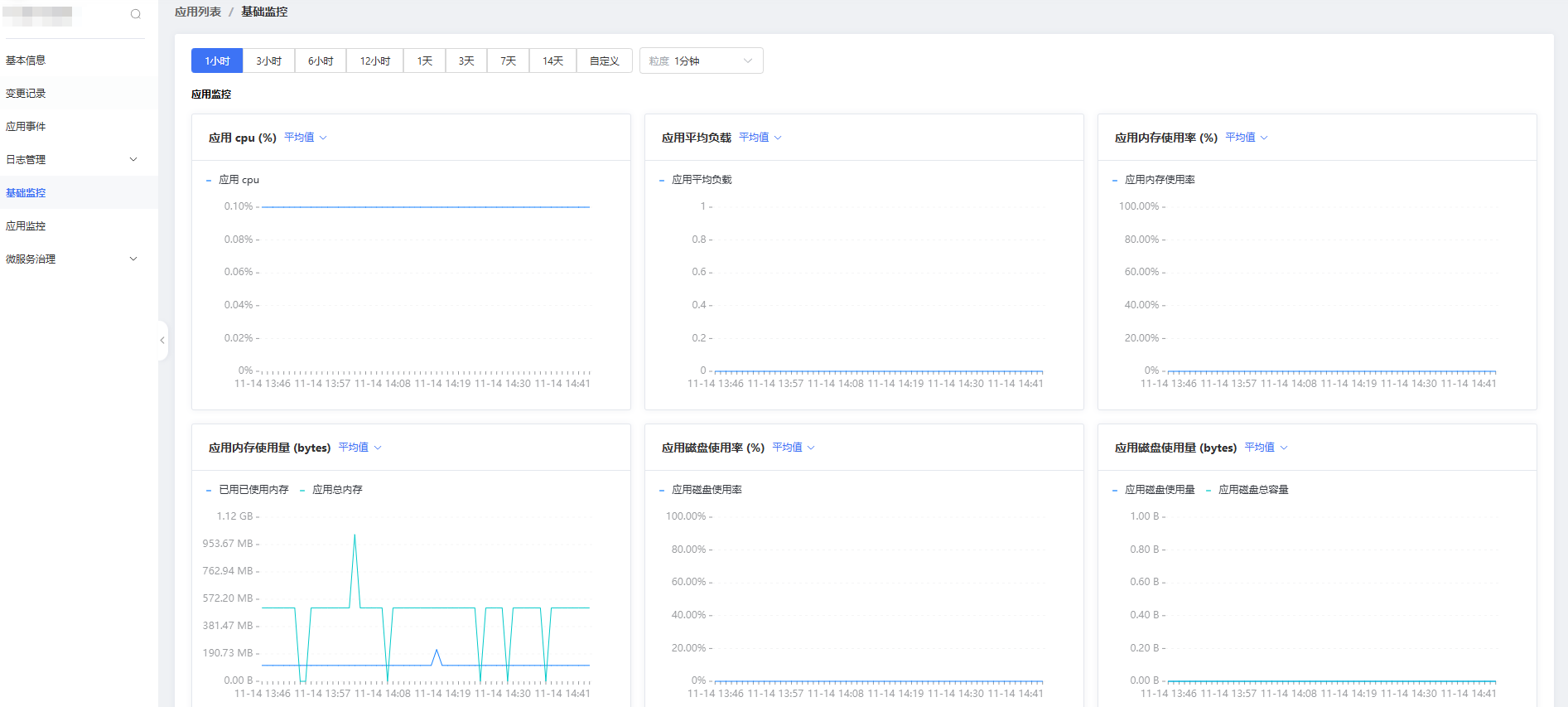 在基础监控页面,您可以按需选择统计的时间长度区间,并查看相关的监控数据