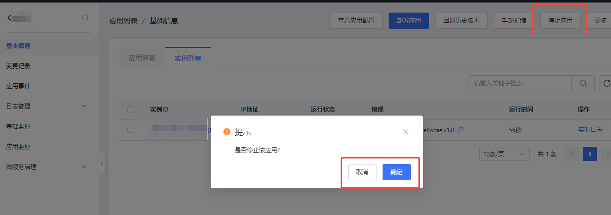 为了节省成本,您可以在业务低谷期时手动停止已启用的应用。处于停止状态的应用不产生计算资源的费用